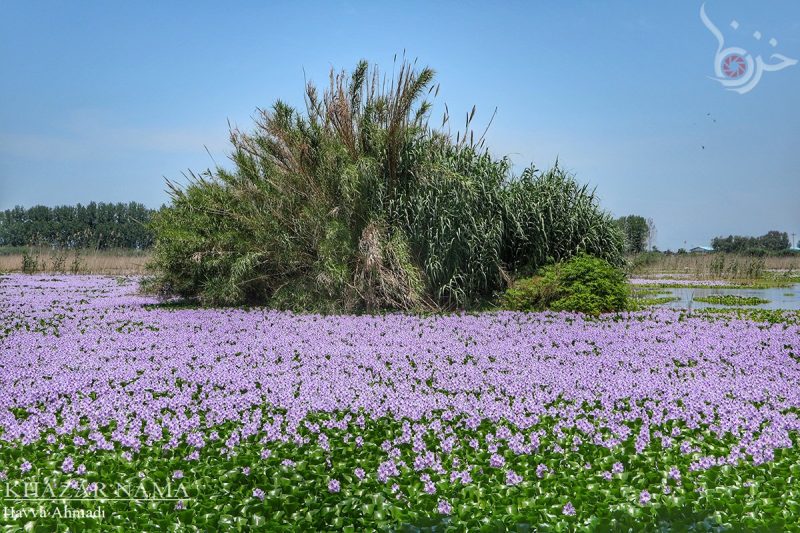 تالاب روستای آغوزبن بابل از سنبلهای آبی پوشیده شد.