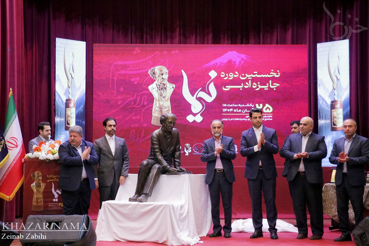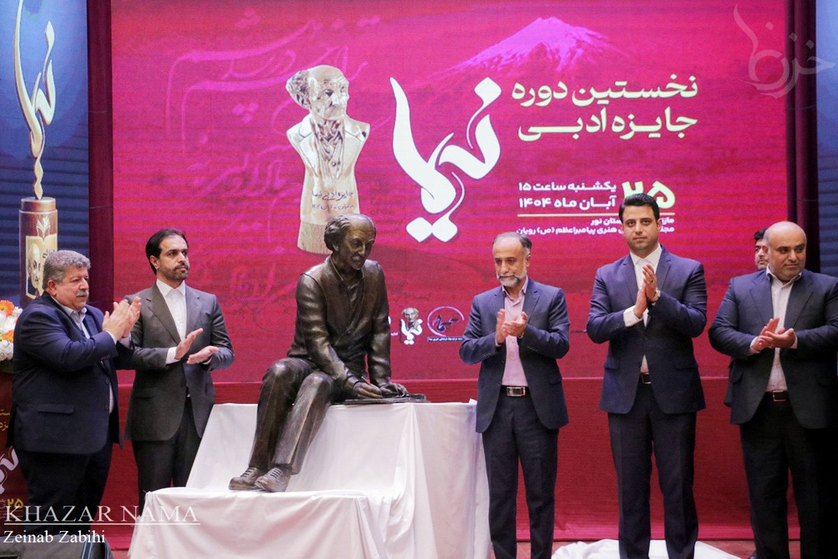 به گزارش ایرنا، رویداد فرهنگی جایزه ادبی نیما امروز -یکشنبه- در مجتمع فرهنگی و هنری پیامبر اعظم(ص) شهر رویان به ایستگاه پایانی رسید و با حضور تعدادی از اهالی فرهنگ و ادبیات و هنر مازندران و ایران، تندیس برنزی پدر شعر نو فارسی به «محمود دولتآبادی» نویسنده نامدار ایرانی و «تقی پورنامداریان» شاعر، پژوهشگر و استاد برجسته ادبیات فارسی اهدا شد.