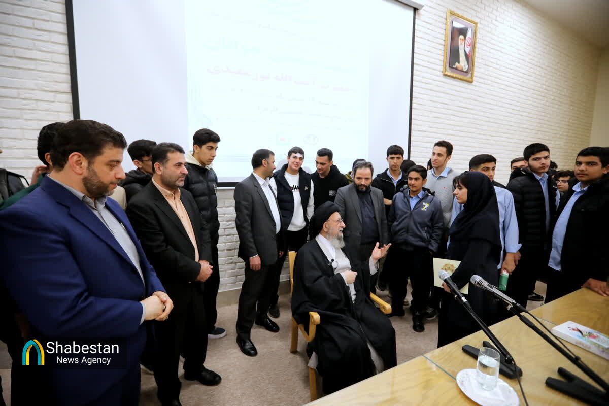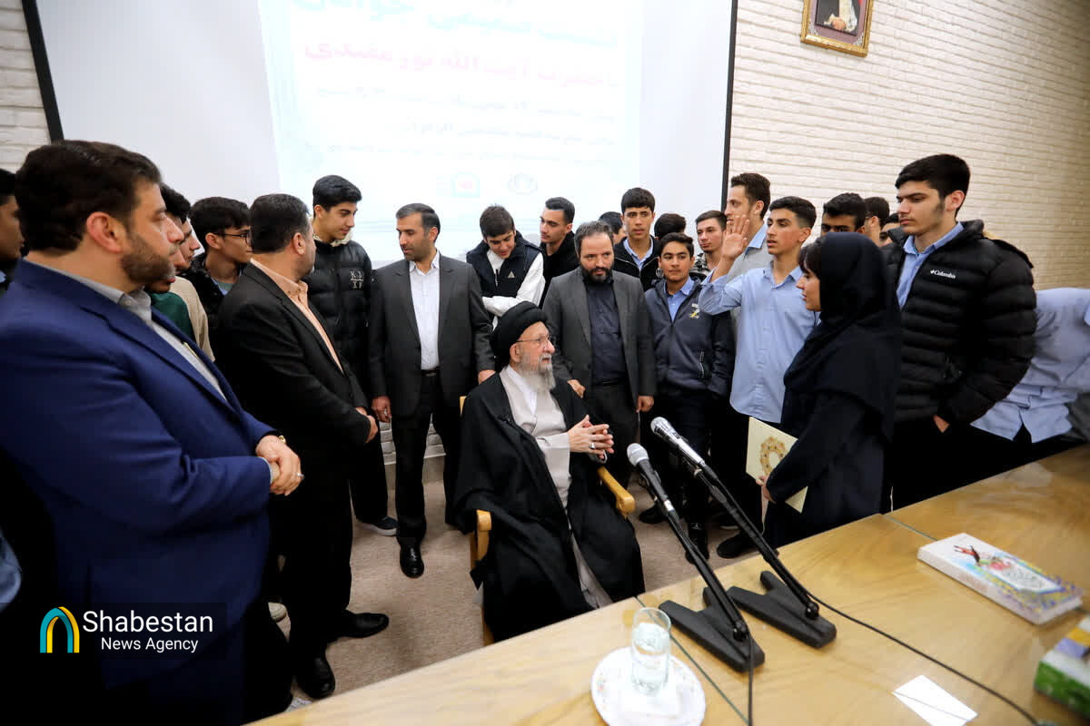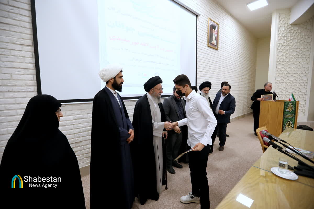 در این دیدار آیتالله نورمفیدی به سوالات دانش آموزان پاسخ دادند و با اهدای هدایایی از دانش آموزان برتر درسی تجلیل شد.