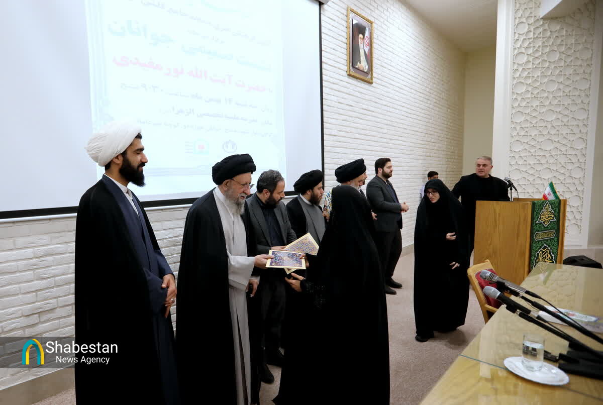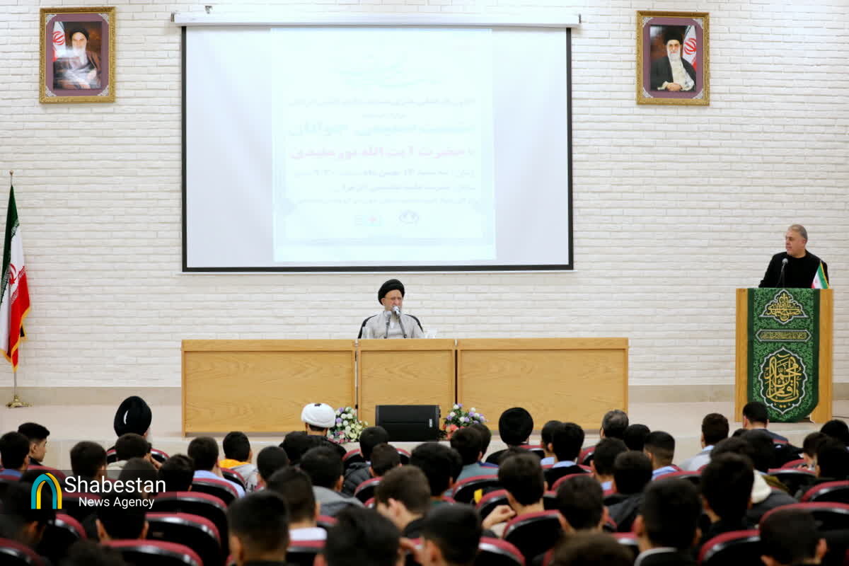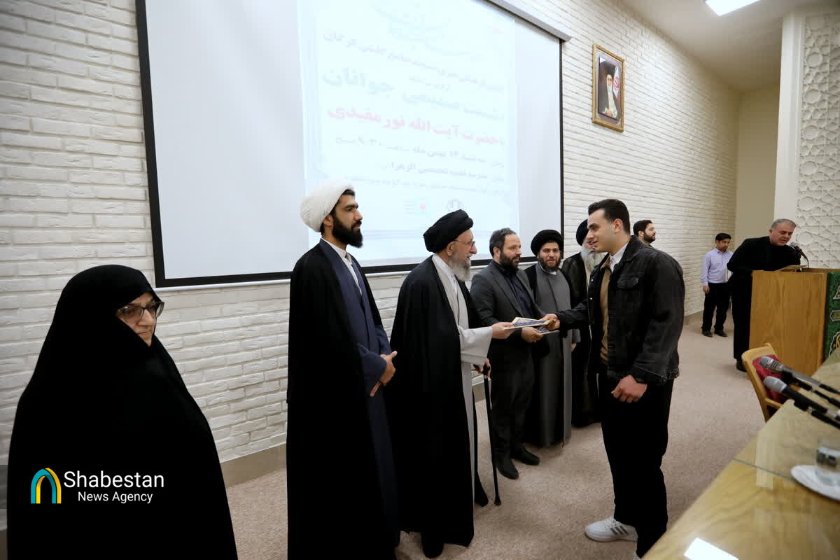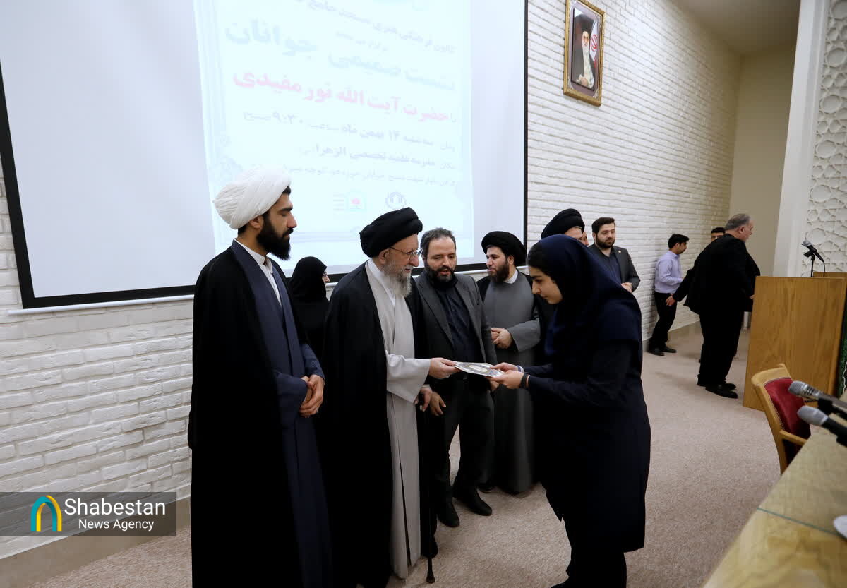 در این دیدار آیتالله نورمفیدی به سوالات دانش آموزان پاسخ دادند و با اهدای هدایایی از دانش آموزان برتر درسی تجلیل شد.