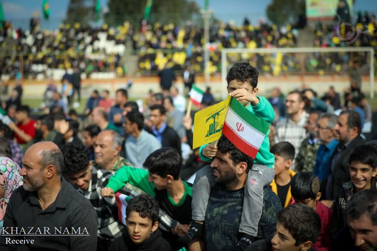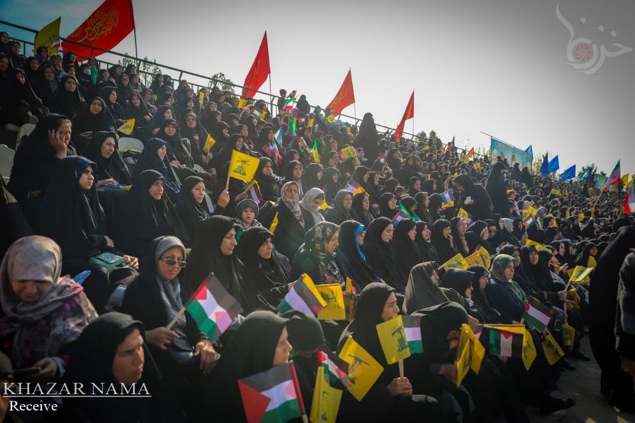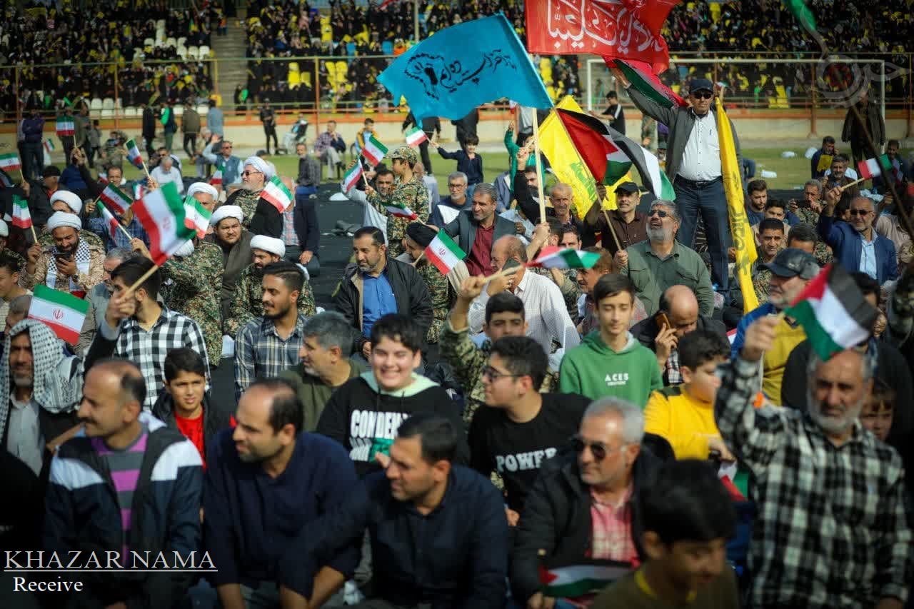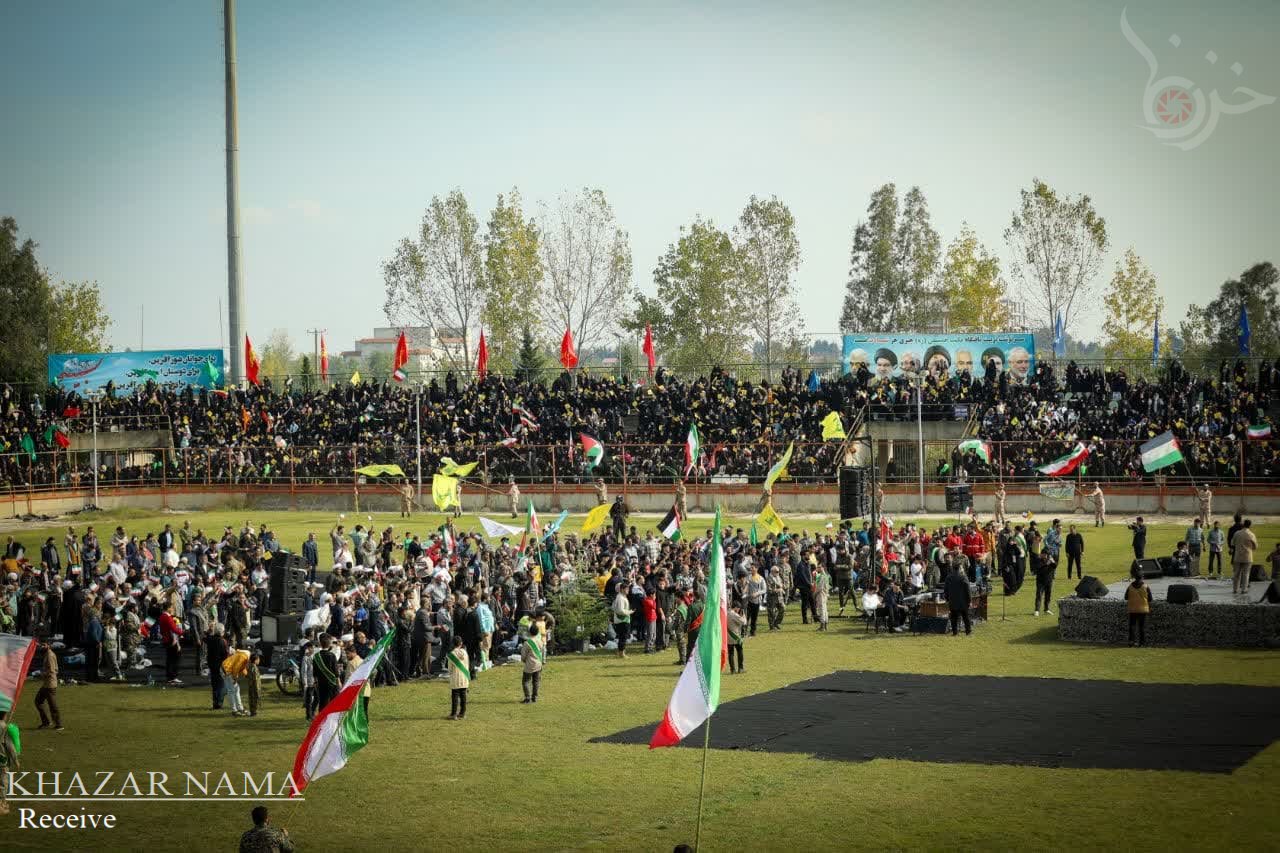 در راستای حمایت از جبهه مقاومت اسلامی ؛ تجمع مردمی و نمایش اقتدار راهیان قدس با حضور پرشور آحاد مردم استان مازندران از صنف ها و اقشار مختلف، در ورزشگاه شهدای ساری برگزار شد.