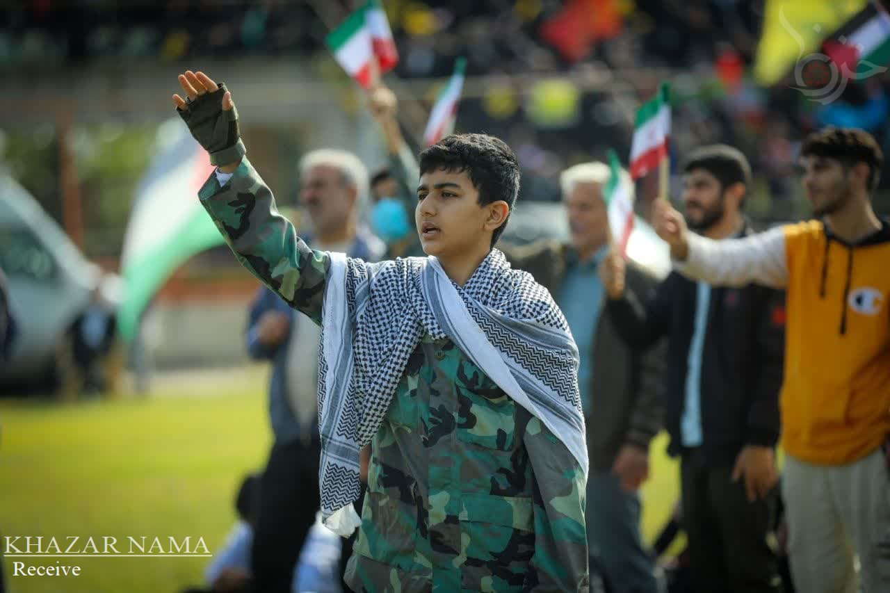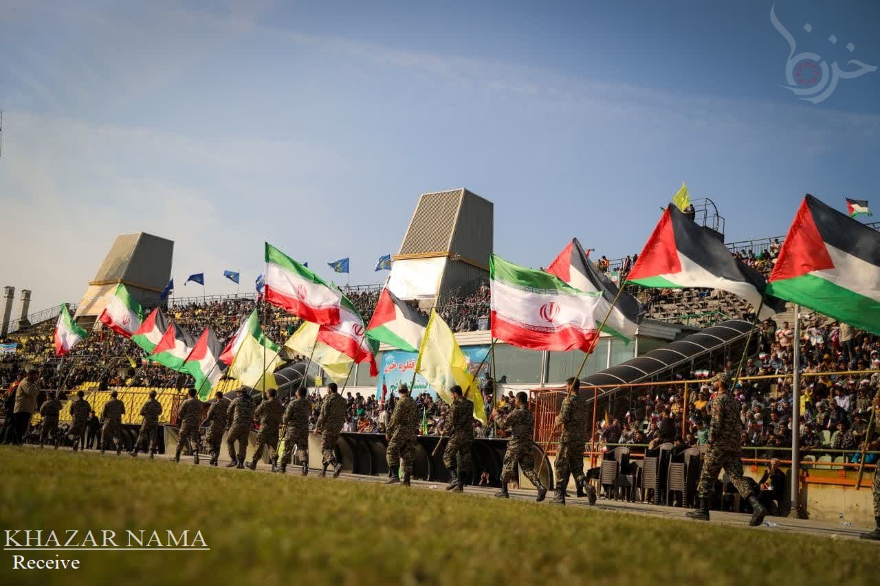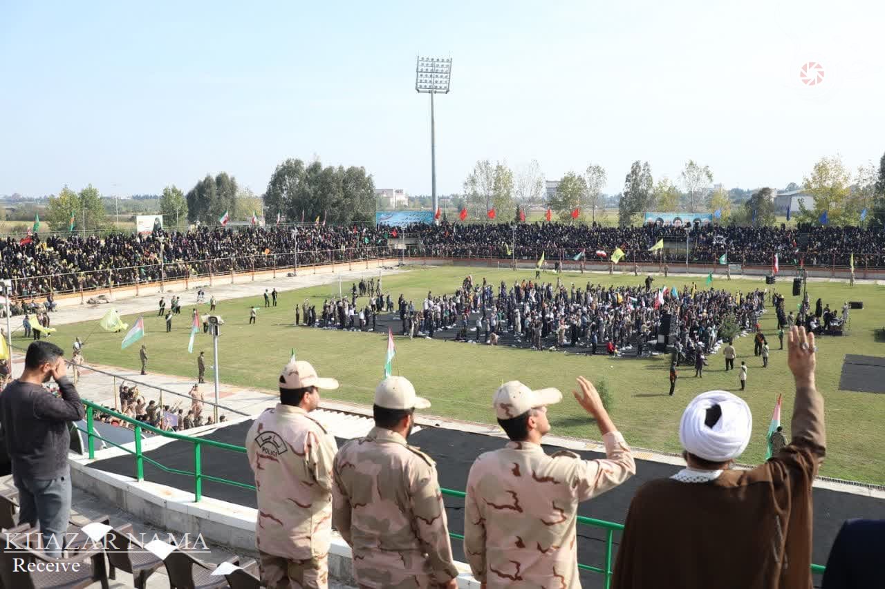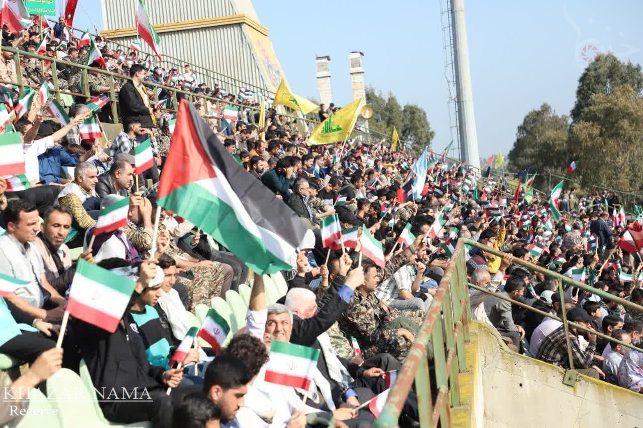در راستای حمایت از جبهه مقاومت اسلامی ؛ تجمع مردمی و نمایش اقتدار راهیان قدس با حضور پرشور آحاد مردم استان مازندران از صنف ها و اقشار مختلف، در ورزشگاه شهدای ساری برگزار شد.