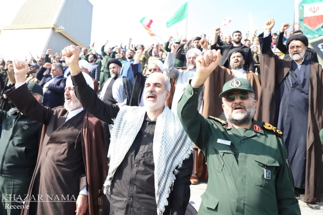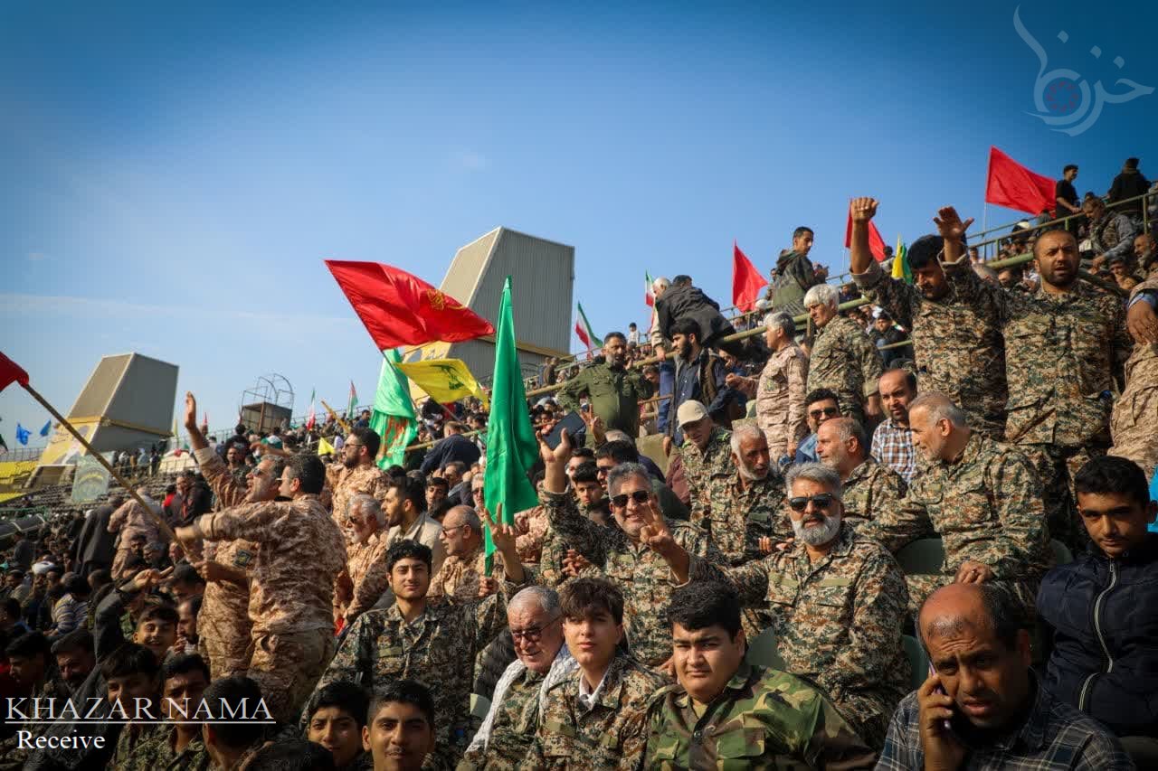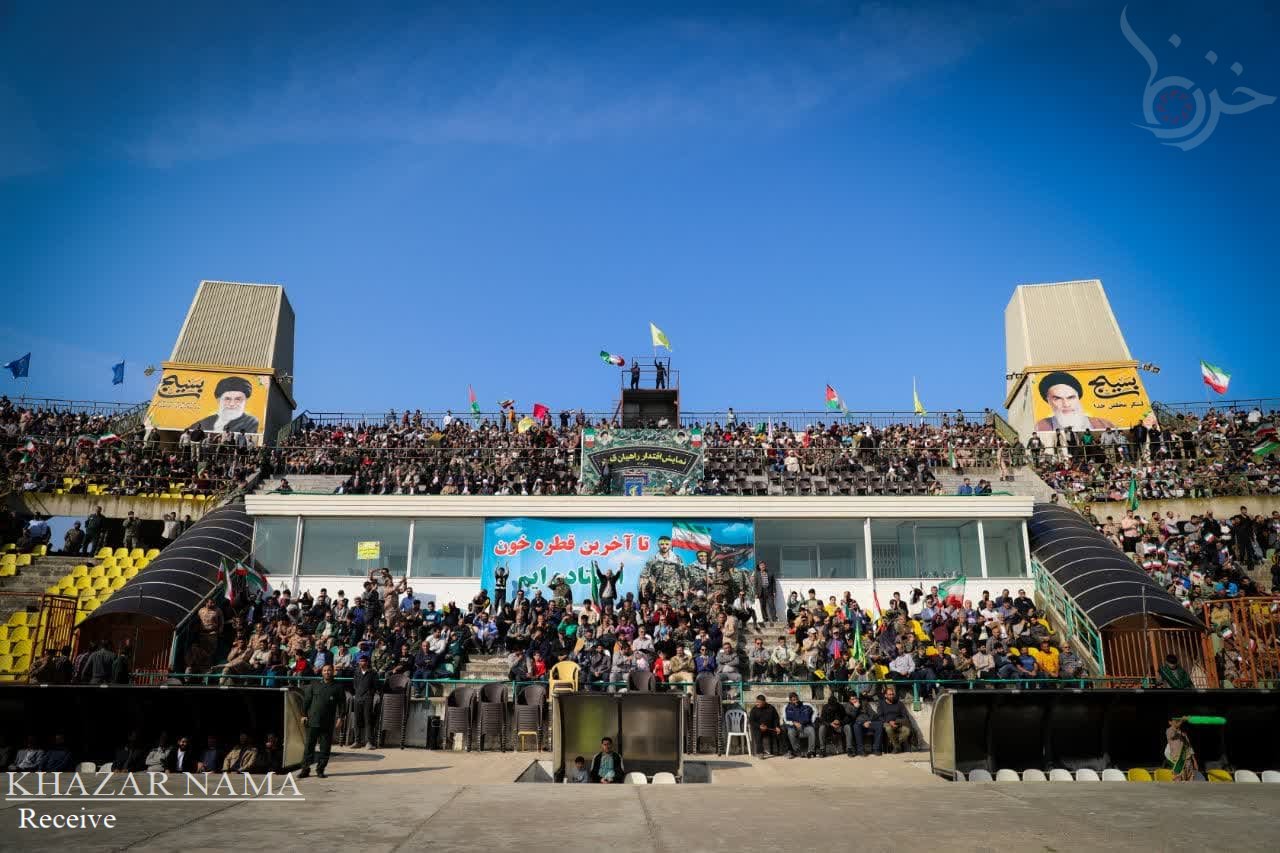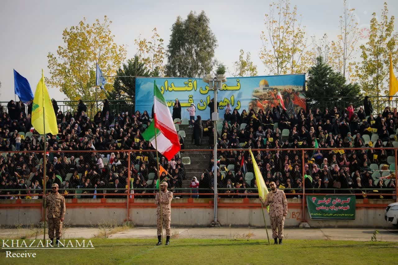 در راستای حمایت از جبهه مقاومت اسلامی ؛ تجمع مردمی و نمایش اقتدار راهیان قدس با حضور پرشور آحاد مردم استان مازندران از صنف ها و اقشار مختلف، در ورزشگاه شهدای ساری برگزار شد.